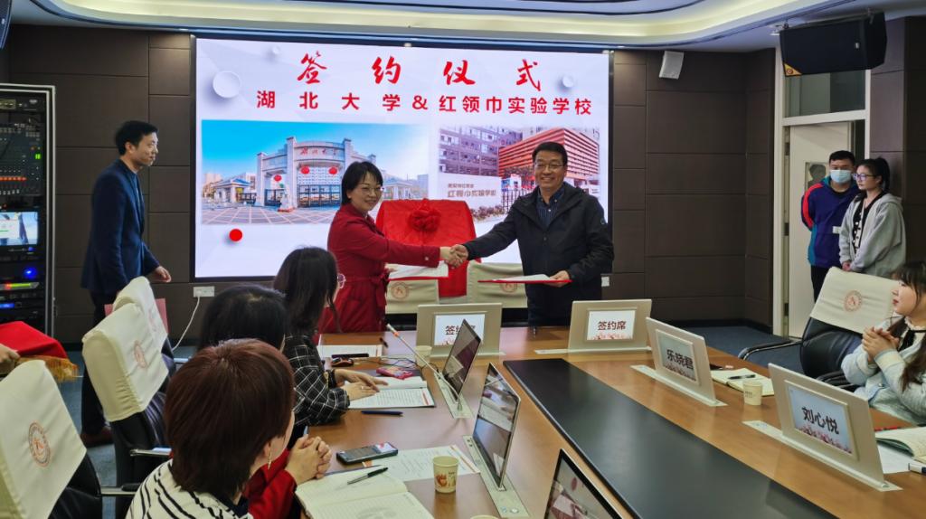 3月7日下午,beat365副经理祝逸明、李经天教授、、刘梦君副教授、肖凯博士一行赴江汉区红领巾实验公司,开展beat365官方网站师范教育实地基地签约授牌仪式暨公司“十四五”课题专项工作研讨会。江汉区教育局教科研室主任程慧、红领巾实验公司董事长陈赤男及全体管理团队、部分骨干教师参加了签约授牌仪式和座谈会。