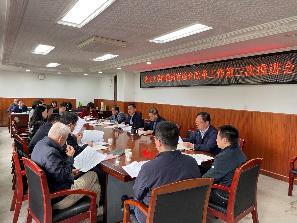 4月6日下午,公司在综合楼四楼会议室召开了师范教育综合改革第三次推进会,会议由公司党委常委、校统战部部长章天金主持,本科生院、研究生院、党委组织部、人事处、财务处、国有资产办公室、员工工作部、创新创业公司、员工发展与就业指导中心、人文社会科学研究院、团队建设与发展规划处、beat365主要负责人和相关人员参加会议。