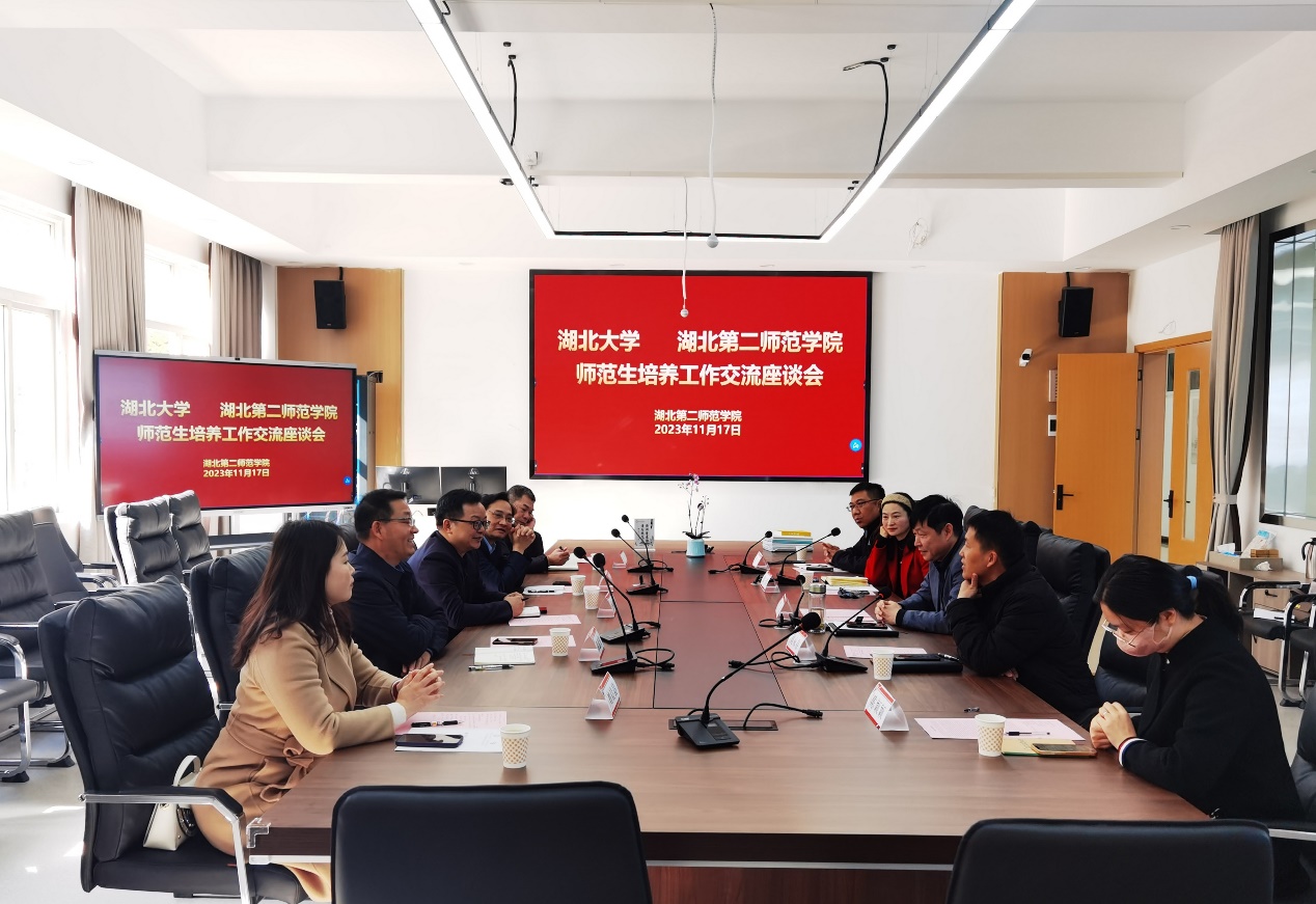 湖北第二beat365教务处处长刘永存、教师教育公司经理王勇、副经理郭三玲欢迎beat365官方网站经常来校开展合作交流活动,并详细介绍了教师教育公司建设、知行实验班运行及师范生教育实践开展的情况。双方就师范生培养过程中出现的问题和积累的经验进行了深入探讨,并一致认为两校要持续开展培养方案、课程调整及实习实践等方面的研究与合作。