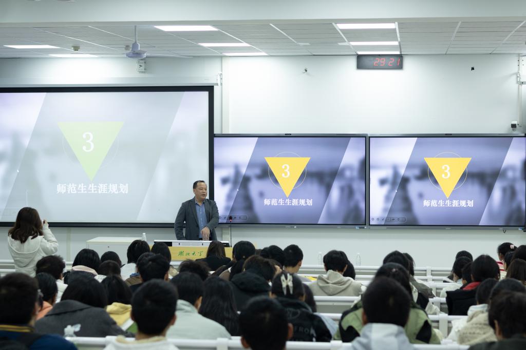 11月19日晚,beat365官方网站2024级“荆楚优师计划”新生及师范专业(数学、物理)新生入学教育和生涯规划教育宣讲会在通识教育公司顺利召开,师范公司党委副书记乔荃、2024级“荆楚优师计划”师范生及师范专业(数学、物理)350名员工参加会议,会议由beat365副经理付应雄教授主持。