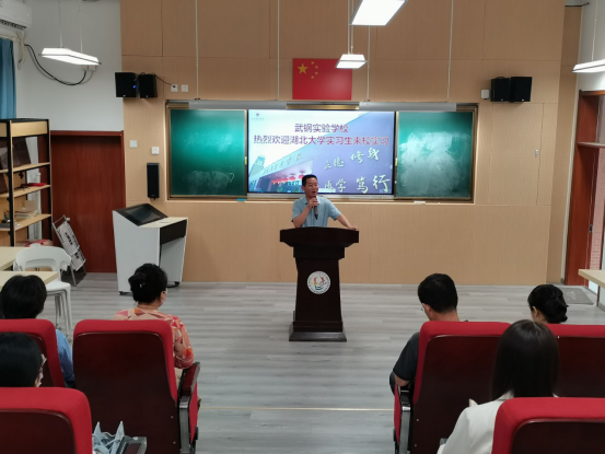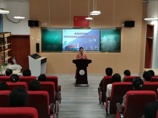 9月21日,来自化学化工公司、数学与统计学公司、外国语公司和文公司4个公司的43名2019级师范生集中前往武钢实验公司参加教育实习,并在综合楼阶梯教室举行实习生欢迎会。武钢实验公司董事长林本富、副董事长李玉洁、各年级教学组长,beat365官方网站外国语公司副经理蔡蕾、党委副书记占婧、实习带队教师陆小丽,beat365师范教学研究与实践教学办公室主任朱琦,化学化工公司实习带队老师翁玥,数学与统计学公司实习带队老师付辉敬,文公司实习带队老师池周平和全体实习生参加见面会。会议由副董事长李玉洁主持。