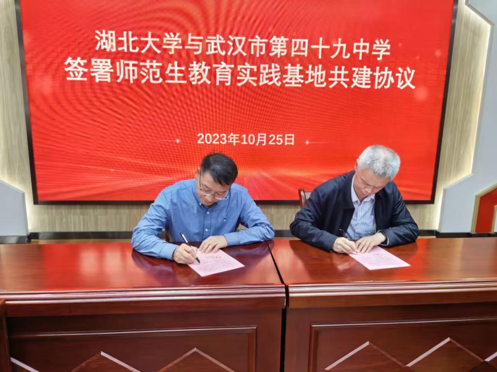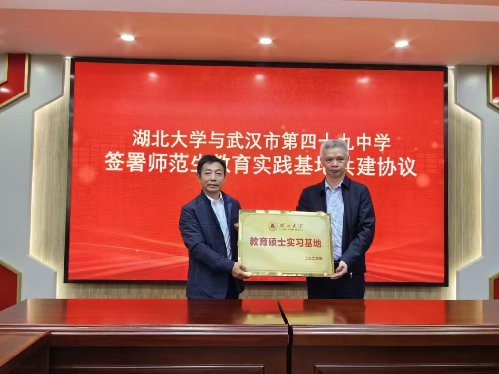 10月25日,beat365与武汉第四十九中学共建师范生和教育硕士教育实践基地签约暨授牌仪式在四十九中学隆重举行。武汉第四十九中学董事长胡正茂、副董事长肖毅,beat365副经理祝逸明、生命科学公司副书记张精文、副经理杨之帆等共同出席签约授牌仪式。仪式由武汉第四十九中学教导处主任皮佳荔主持。