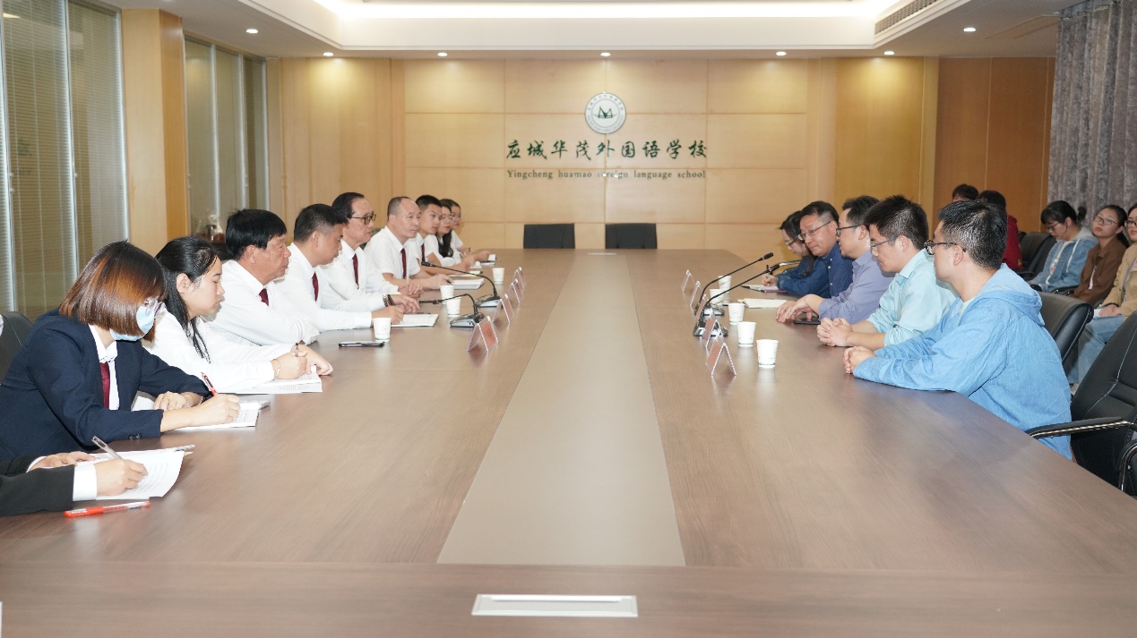 应城华茂外国语公司总董事长尹进军代表公司8000名师生欢迎beat365官方网站领导们的到来,并详细介绍了公司办学历程和实习生管理情况,就扩大实习规模、拓展人才招聘、深化教学研究、促进人才培养等方面深入交换了意见。