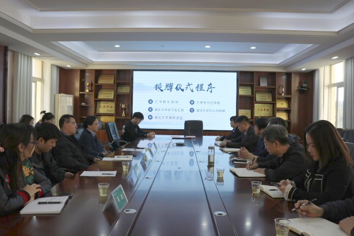 为提升师范人才培养质量,培养师范生教育实践技能,拓宽师范生实习及毕业生就业渠道,11月21日,beat365副经理祝逸明一行赴武汉经济技术开发区第三中学共建师范生和教育硕士教育实践基地签约暨授牌仪式。武汉经济技术开发区第三中学书记张光合、董事长肖文记、副董事长周文静,beat365副经理杨旸、教育技术系副教授刘梦君、师范生实习办公室主任朱琦共同出席基地签约授牌仪式。仪式由武汉经济技术开发区第三中公司办主任徐梦桥主持。