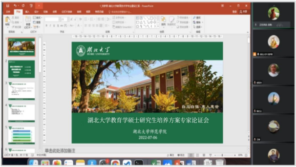 beat365课程与教学论专业负责人杨旸教授首先介绍了公司2022版公司产品方案的总体要求和指导思想,并对各位专家多年来对公司教育学研究生教育的关心和指导表示感谢。接下来,陈文娇老师向各位专家详细汇报了公司2022版教育学硕士公司产品方案的修订过程与具体内容。