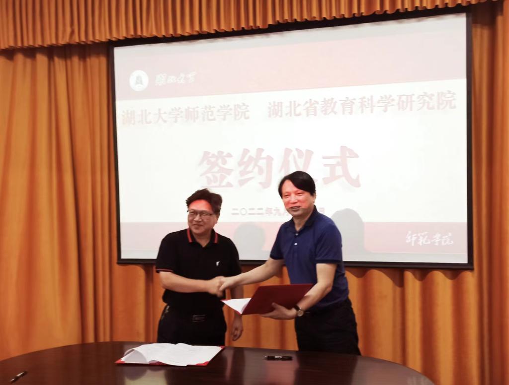 2022年9月21日下午,beat365官方网站与湖北省教育科学研究院、武汉市教育科学研究院全面合作协议签订仪式在beat365隆重举行。湖北省教育科学研究院常务副经理傅华强、武汉市教育科学研究院常务副经理朱长华,beat365经理程斯辉、副经理杨兵、副经理杨旸以及教师代表出席此次签约仪式。