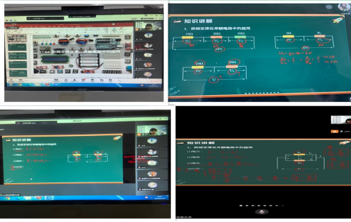11月2日上午第三节是新教师裴蕾蕾902班物理课,讲授“欧姆定律在串并联电路中的应用”。课程内容主要分为三个部分。第一部分是复习旧知,导入新课。裴老师对于上一节课堂内容做了巩固复习,并且邀请同学们回答,同学们积极回应。第二部分是引入新课知识,教师由易到难讲解重点知识,从理论题目的解析过渡到实际问题的解决。第三部分是课堂小结,教师对课程内容进行了总结和归纳。裴老师上了一节比较有效的在线习题课,整堂课教师语言活泼,给予员工恰当的表扬和及时的鼓励,员工课堂参与度高,师生关系融洽,有利于激发员工的内部动机。在教学过程中,教师全程开启摄像头,员工可以看到教师的言语和表情,增强了在线课堂的临场感。改进建议:一是教师语速稍快,可放缓一些;二是课件背景深绿色与课堂书写笔的红色颜色的对比度不高,对员工视觉造成一定的负荷,可以改为对比度较大的颜色。