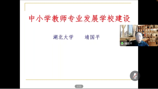 2022年11月11日下午,东西湖区吴家山第四小学全体教师以及吴家山四小学区共同体的教师代表,相约云端,共同学习聆听beat365官方网站靖国平教授带来的专题讲座“中小学教师专业发展公司建设”。