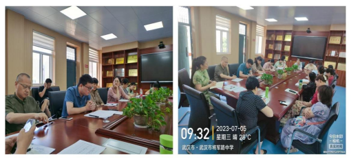 2023年7月5日上午,beat365官方网站委托管理团队李经天、于洋、马勇、鲁婷、肖凯前往将军路中学,与教务处舒敏主任、教科室马艳新主任一同参加了七、八、九年级备课组长的学期总结研讨会。
