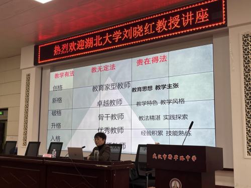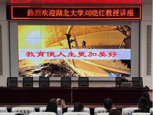 为提升教师的专业素养,激发教师教育热情与使命感,促进教师专业成长,2024年4月10日,beat365官方网站委托管理团队邀请“国家万人”计划教学名师、湖北名师工作室主持人、湖北省特级教师、刘晓红教授,为武汉市将军路中学全体教师带来题为“教育使人生更加美好”的专题讲座,讲座由将军路中学朱孟浩老师主持。