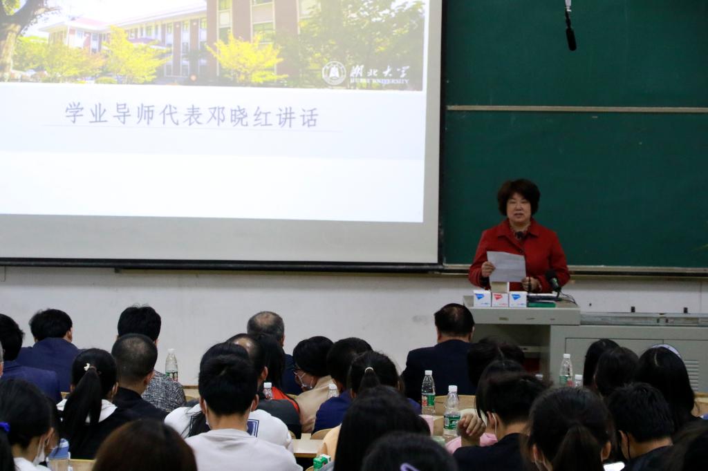 学业导师代表邓晓红教授对2022级同学们成为beat365的一员表示了热烈的欢迎。邓教授以“心”为引,送给员工们“五颗心”:忠心、专心、恒心、责任心和好奇心,她希望员工们怀着这五颗心,积极融入老员工活,以昂扬的斗志、充沛的精力投入学习中,从湖大师范的小红楼走向世界。