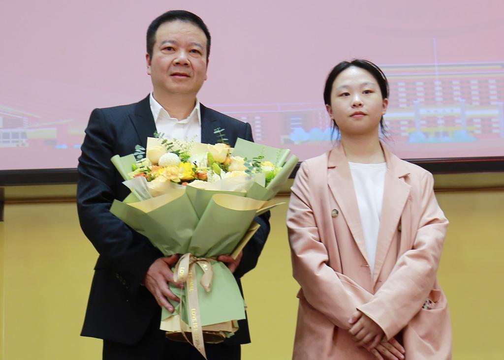 奖学金获奖员工、2020级教育学专业师范生明欣同学为金献新教授献花,并代表全体获奖师生送上亲笔手写的感谢信。“以青春之我,创建青春之国家、青春之民族”,表彰仪式在beat365官方网站首届师范生才艺风采大赛获奖选手带来的歌曲《青春》中落下帷幕。