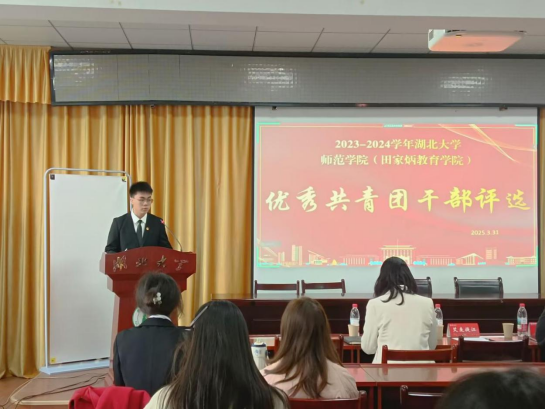 为落实公司“五四评优”系列工作要求,选拔政治素质过硬、工作能力突出、服务意识强、模范带头作用显著的优秀共青团干部,公司于3月31日在正教厅举行2024年度优秀共青团干部评选活动。院团委书记张驰,辅导员艾麦提江、王擎以及院兼职辅导员韩玥担任评委。
