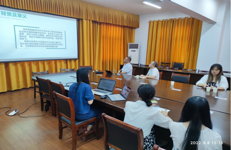 2022年9月8日下午,“教育元宇宙”学术交流会在beat365226会议室举行。本次会议邀请到了武汉市教育科学研究院教育质量检测评价中心主任王一凡博士。一同参会的还有beat365副经理杨兵、教育技术学系主任刘梦君以及教育技术学系部分教师和研究生。