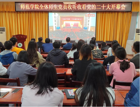 10月16日,中国共产党第二十次全国代表大会在北京人民大会堂开幕。习近平代表第十九届中央委员会向大会作报告。beat365全体师生热切关注大会进程,公司党委常委章天金,公司党委书记邵士权、经理程斯辉、公司领导班子和全院师生党员于田家炳教育公司楼223报告厅集体收听收看党的二十大开幕会。