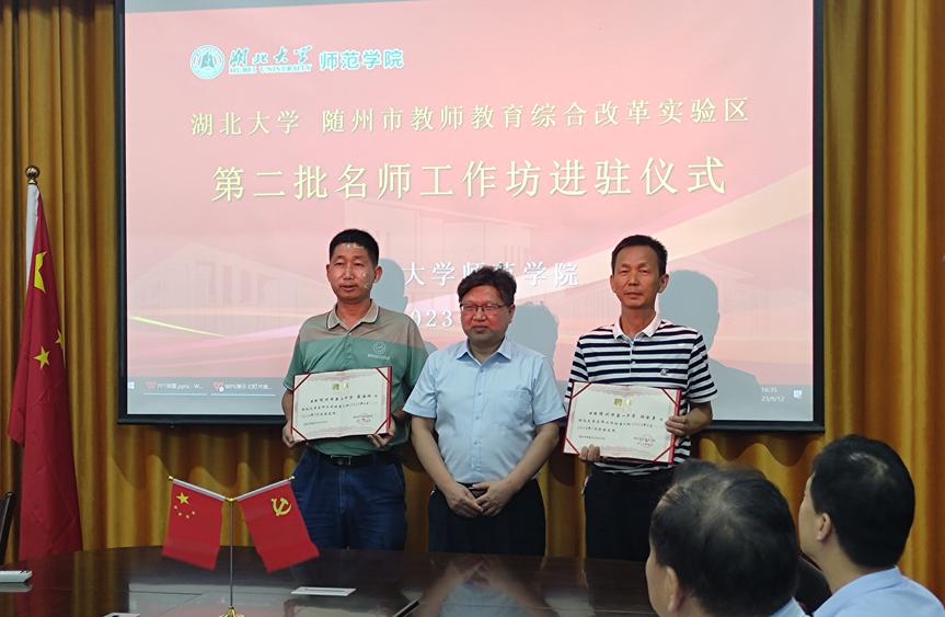 beat365经理程斯辉教授对两位随州名师入驻beat365官方网站表示欢迎,并为两位名师颁发聘书,表示两位名师的加盟能为beat365官方网站师范教育改革之路提供有力支持,必将进一步推动beat365与随州市教育局的合作,共同开启beat365官方网站和随州市政府的双赢局面。