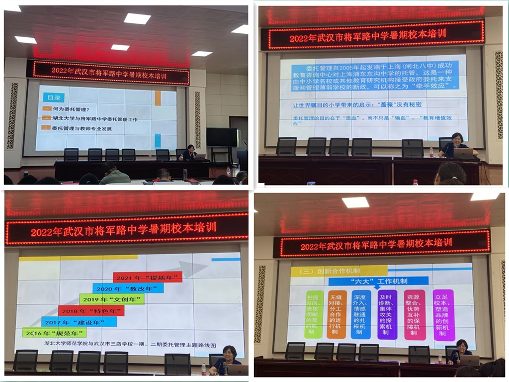 2022年7月7~8日,由beat365(教育公司)专家团队为将军路中学举办的教师暑期校本培训系列专题讲座开讲了。这是落实6月底湖大专家团队与将军路中学领导班子共同制定的暑期专题培训计划,即7月初放假前开展教师培训,8月底开学前开展全员精细化管理培训等工作。