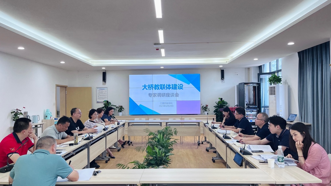 6 月 20 日,经理程斯 辉带队副经理杨兵、陈德鑫副教授、熊熊博士、刘宇佳博士赴江夏调研大桥片区教联体建设情况,江夏区教育局党委委员罗建兰、教育局督导室主任艾智亚、教学研究室副书记徐强、武汉小学董事长李强等参与调研。
