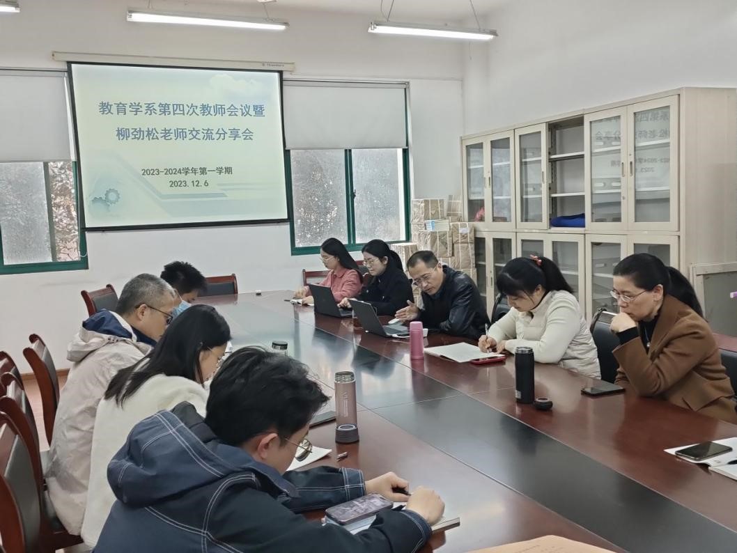 2023年12月6日,公司教育学系召开了2023-2024学年第一学期第四次教师会议暨柳劲松教授经验交流会,会议由教育学系系主任于洋副教授主持。柳劲松教授围绕教学、科研、社会服务三方面进行了经验分享,旨在优化教师学习成长环境,强化教师科研生涯指导。