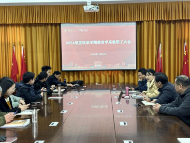 为了更好地适应近期专业调整变化,合理规划专业发展方向,修订人才培养方案等各项重要工作,以提升教育学系的整体教育质量和专业发展水平,12月13日,教育学系召开2024年度秋学期全系教职工大会。出席此次会议的有教育学系全体教师及教师教育公共课部负责人。会议由教育学系系主任于洋主持。