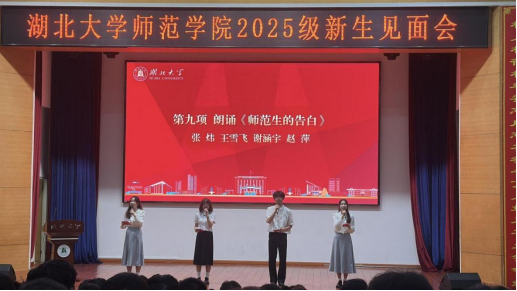 会议最后,在校师范生代表带来朗诵节目《师范生的告白》,用深情话语和真挚感情表达了师院学子的教育情怀和责任担当。