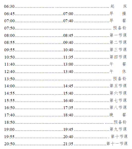1.员工课外活动和政治学习时间为周三下午,周三第六、七节课可适当安排教学活动。2.坐班人员工作时间:上午8:00—11:40,下午14:00—17:30。