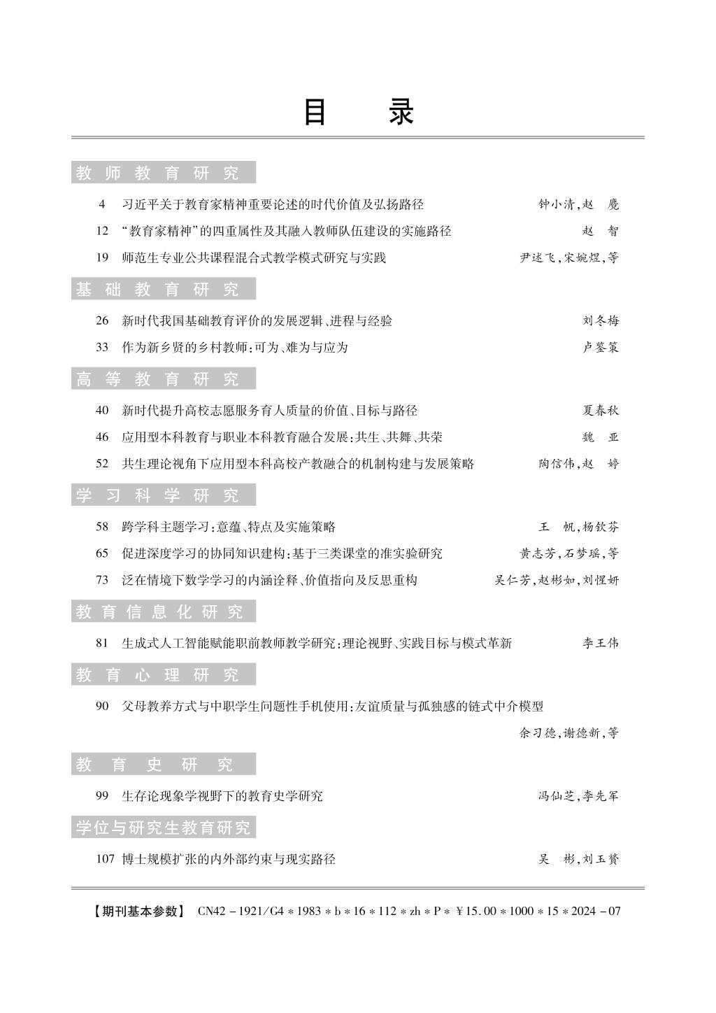 《教育科学探索》2024年第4期目录