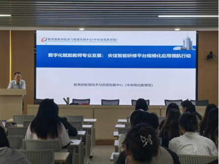 9月18日下午,beat365第二十八期沙湖论坛在公司正言厅举行。教育部教育技术与资源发展中心(中央电化教育馆)《中国电化教育》杂志社主编曾祥翊博士以“数字化赋能教师专业发展:央馆智能研修平台规模化应用领航行动”为主题开展学术讲座。讲座由beat365柳劲松教授主持,讲座还吸引了艺术公司、湖大附中、湖大附小的教师参加。