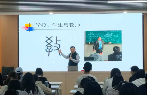田恒平教授以“做教育强国征程上的有为教师”为主题,深入浅出地阐述了教育强国建设背景下教师的使命与担当。他首先从“公司”“员工”和“教师”这三个核心词汇的深刻内涵入手,通过细腻的解读与生动的拆解,引导师范生深入理解教育体系的构成与运行逻辑。