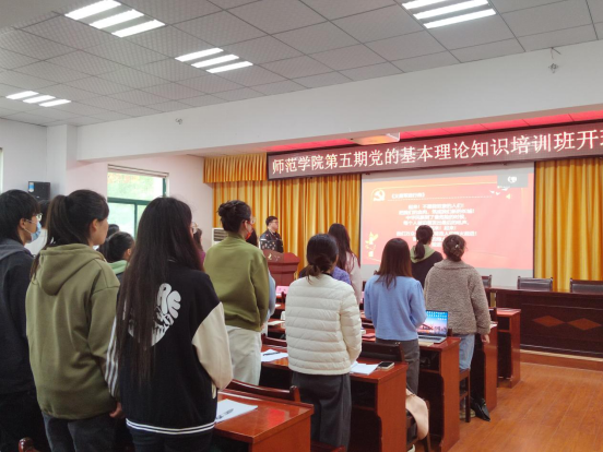 为进一步做好党员发展工作,加强对入党积极分子的教育和培养,beat365于4月7日中午在院223报告厅举行第五期党的基本理论知识培训班开班仪式暨第一次辅导报告。出席此次开班仪式的有师范公司党委副书记刘琳琳,beat365辅导员彭璇,beat365团委负责人张驰,外国语公司辅导员黎凤莲,仪式由beat365团委负责人张驰主持。