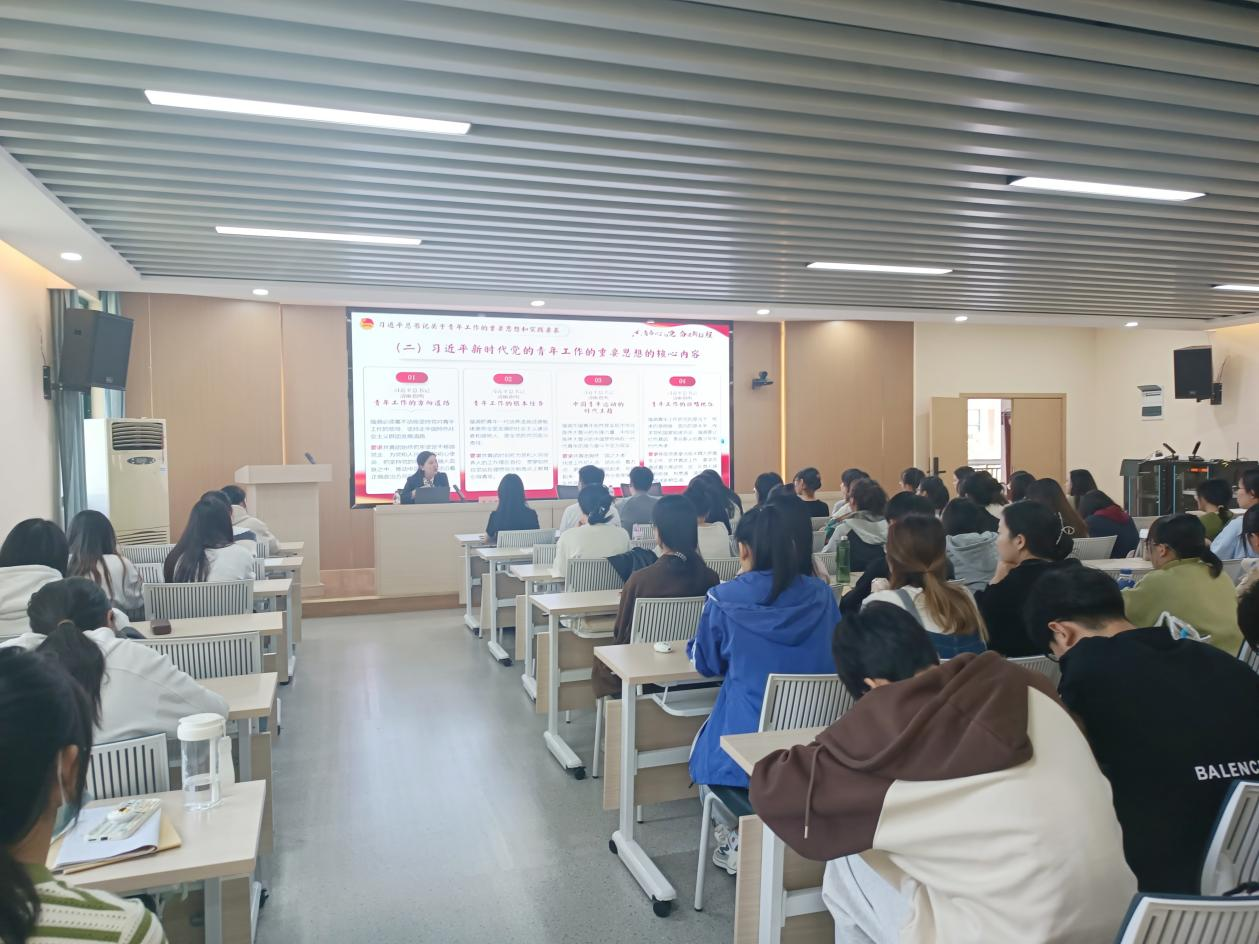 图2 校团委书记张丽娜为员工们作《青春心向党 奋进新征程》的辅导