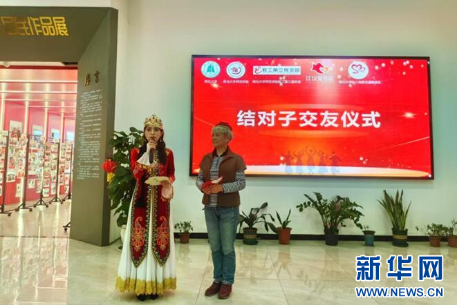 活动由beat365与江汉里社区联合开展,同学们带来主题演讲《爱国爱党代代传》、手鼓演奏《巴郎仔》、民族舞蹈串烧《石榴花开》等节目,社区居民们也表演了男声小合唱、葫芦丝演奏、书法才艺等。精彩的节目赢得连连叫好。在“结对子”交友环节,8位少数民族同学与8位居民结对,互赠的小礼物和交友卡片承载了彼此的情谊。最后,大家在“文化体验工坊”体验书法茶艺、品尝新疆特色糕点、交流活动感受,现场充满欢声笑语。