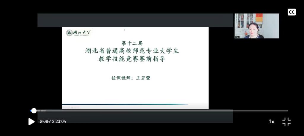 第二场培训中,王老师就语言表达和教态提出了几点建议,随后依次点评选手们的校赛作品。王老师表示,选手的第一印象很重要,着装要大方得体,不能太休闲或过于复杂。在讲解知识点的过程中,互动真实自然,环节有效实用,要做到把知识点烂熟于心,准确把握高频出现的知识点相关词语,注意重音和断句,避免误读。此外,因本次竞赛是采取视频录制的方式进行,选手要有镜头感意识,学会用余光扫视PPT的内容。点评过程中,选手们都有醍醐灌顶之感。
