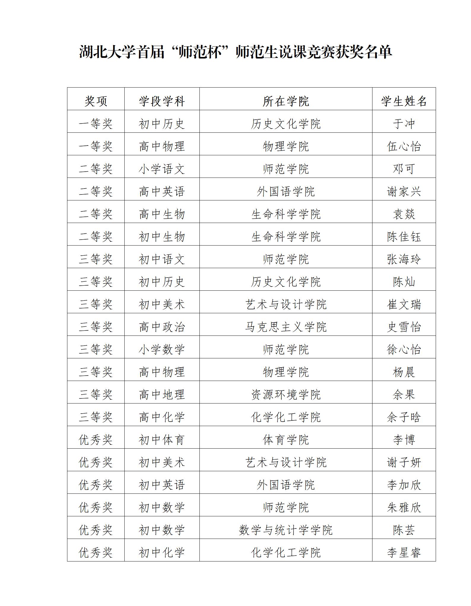 beat365官方网站首届“师范杯”师范生说课竞赛获奖名单